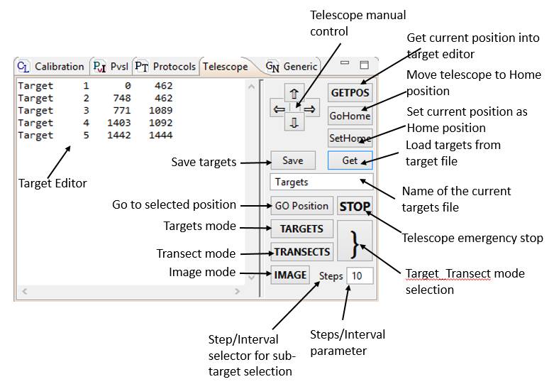 The telescope control panel allows programming a sequence of targets and defines the mode of accessing these targets: