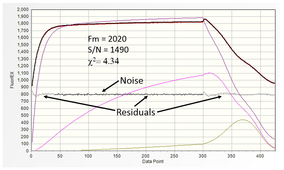 The measured fluorescence transients are processed by the LIFT/FRR application software to quantify a range of biophysical